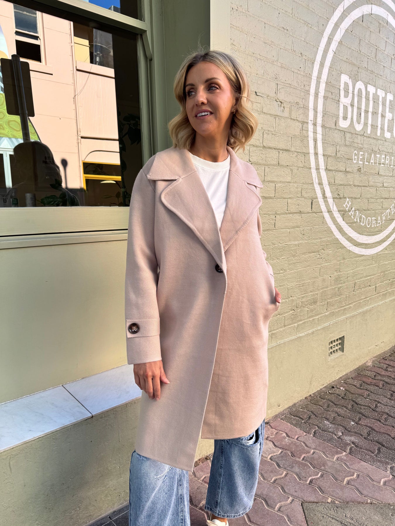 Bridget Knit Coat in Latte from Sunny Girl
